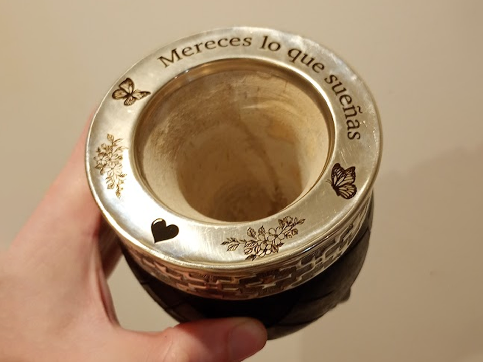 Los modelos de los mates "Bombo" y "Vaso" tambien pueden incluir un grabado 360° (alrededor de todo el diametro exterior del mate). Consultar por los mismos.